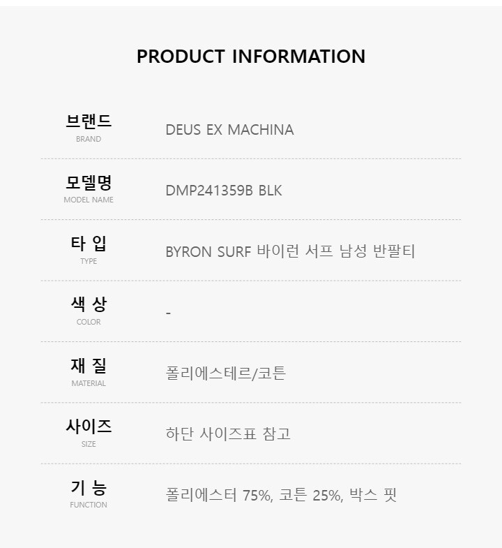 데우스엑스마키나 DMP241359B BLK BYRON SURF 바이런 서프 남성 반팔티