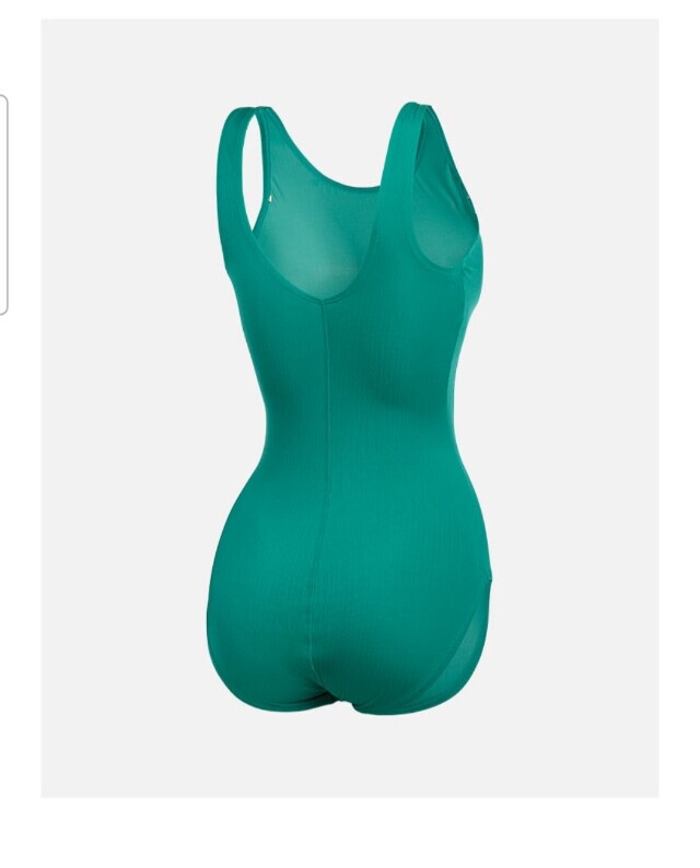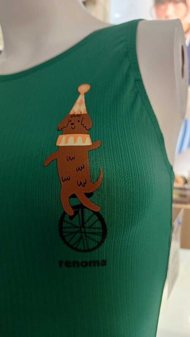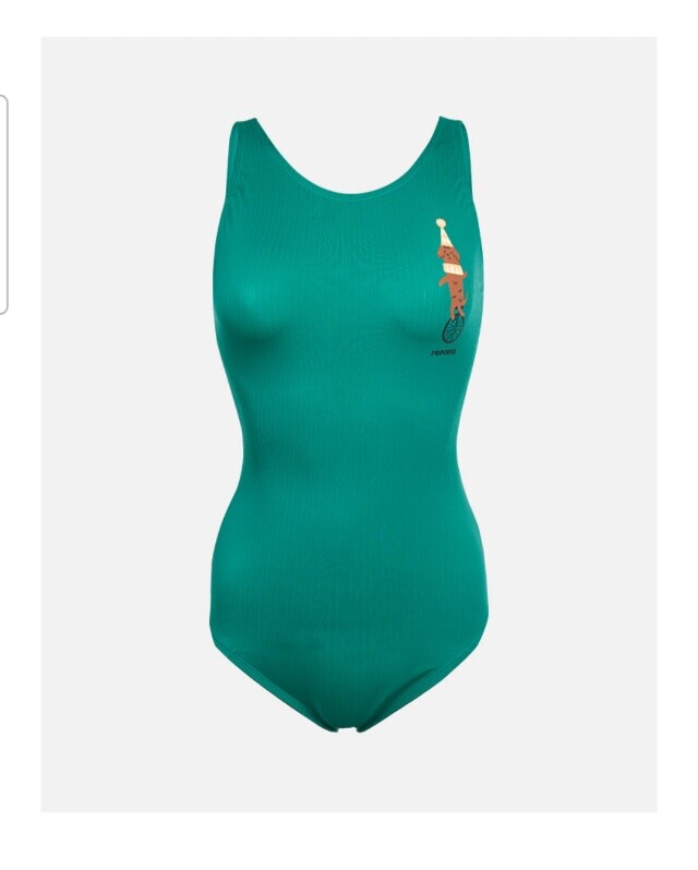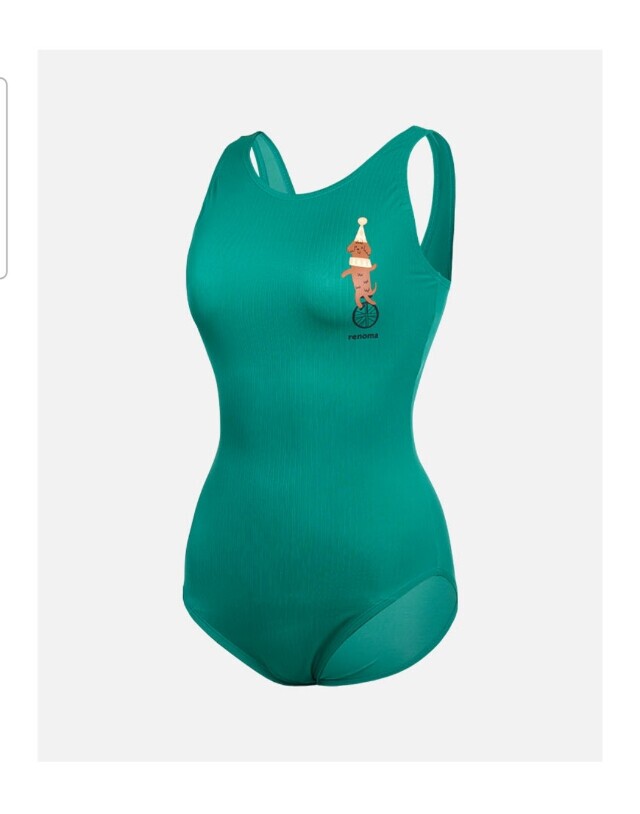 고급스러운 그린 컬러에 강아지 일러스트가 포인트인 U라인 원피스 수영복입니다.