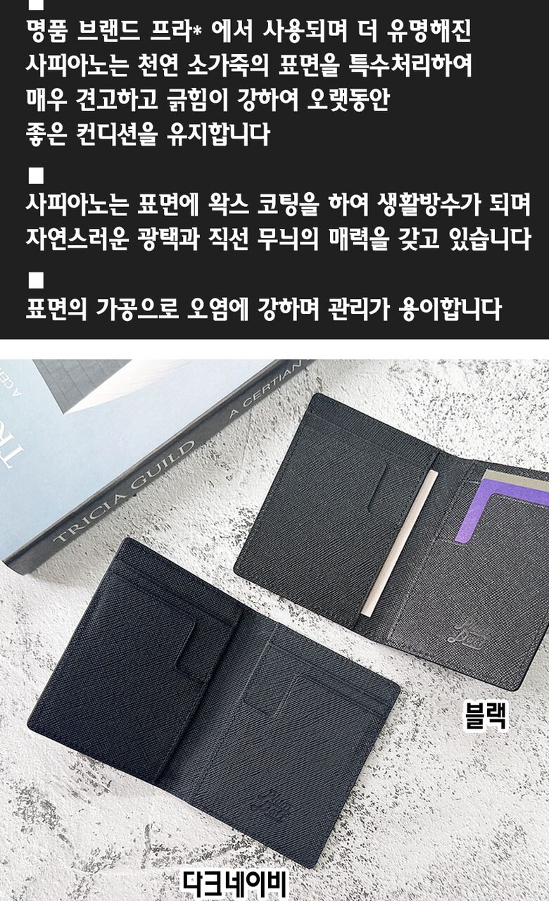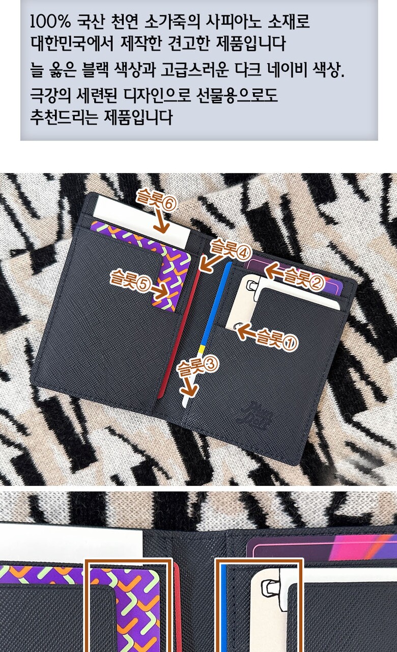 국산 플럼도트MA8 블럭6포켓 소가죽 카드지갑 명함지갑