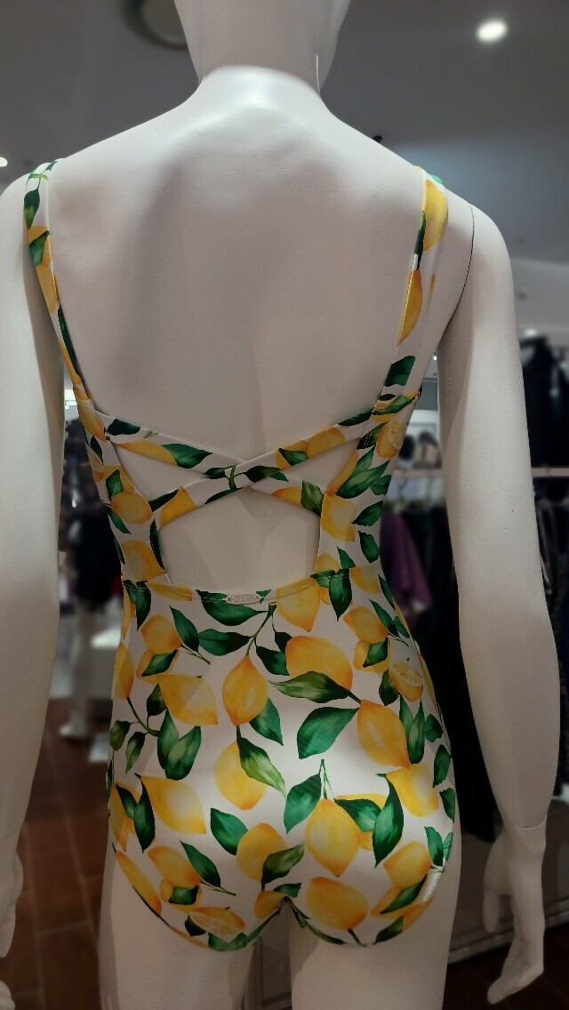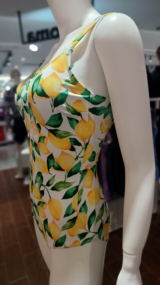 착용하기 편한 인컵 스타일로 레몬 프린트가 포인트인 비치원피스입니다 .