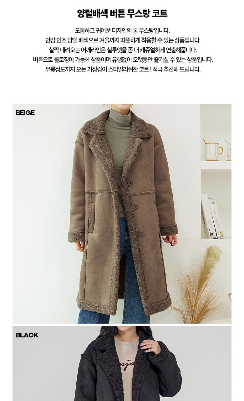 양털배색 버튼 무스탕 코트_B1911MU608D