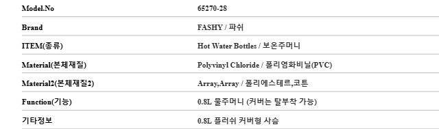 파쉬 65270-28 0.8L 플러쉬 커버형 사슴 보온주머니
