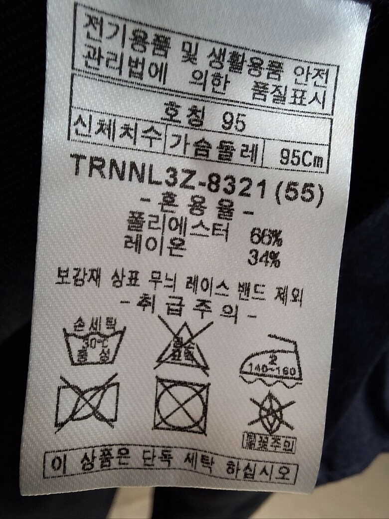 | 1. 제품 소재 (섬유의 조성 또는 혼용률을 백분율로 표시, 기능성인 경우 성적서 또는 허가서) | 폴리에스테르 66%, 레이온 34% |
