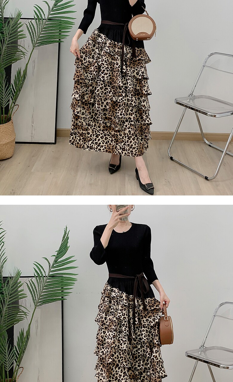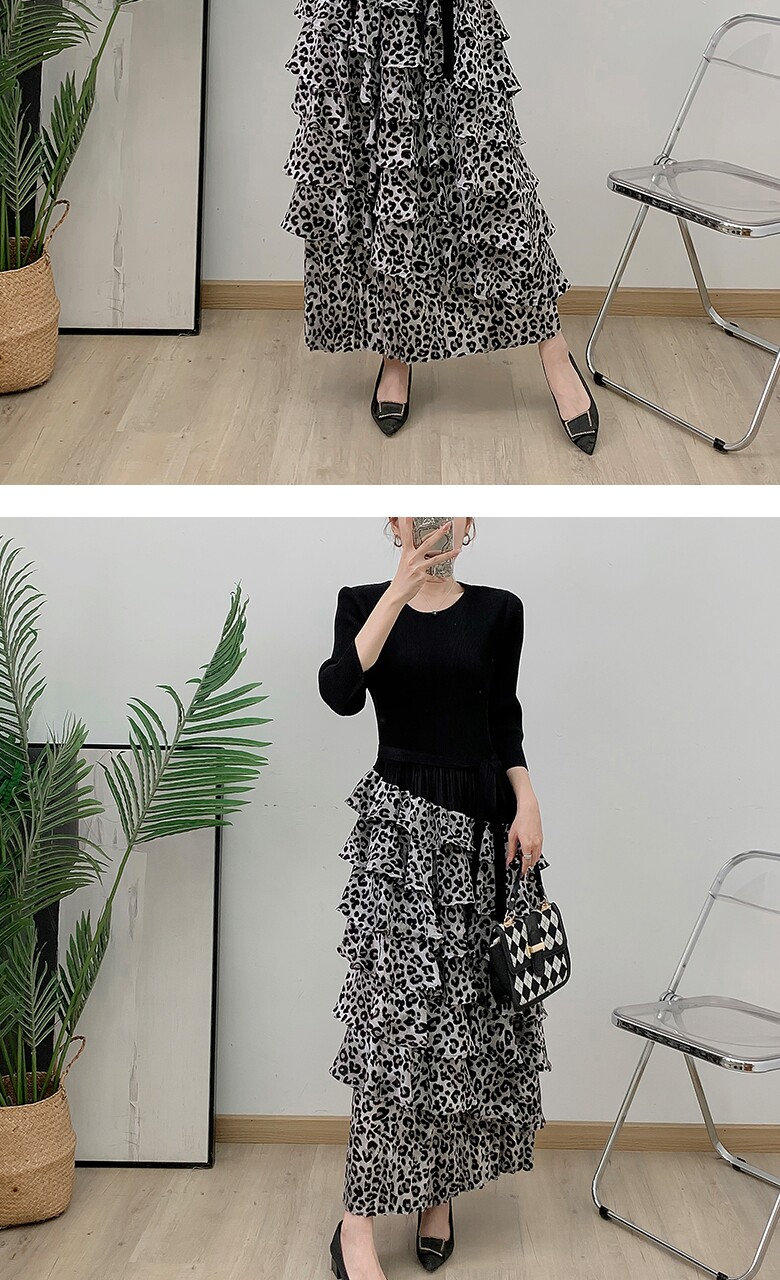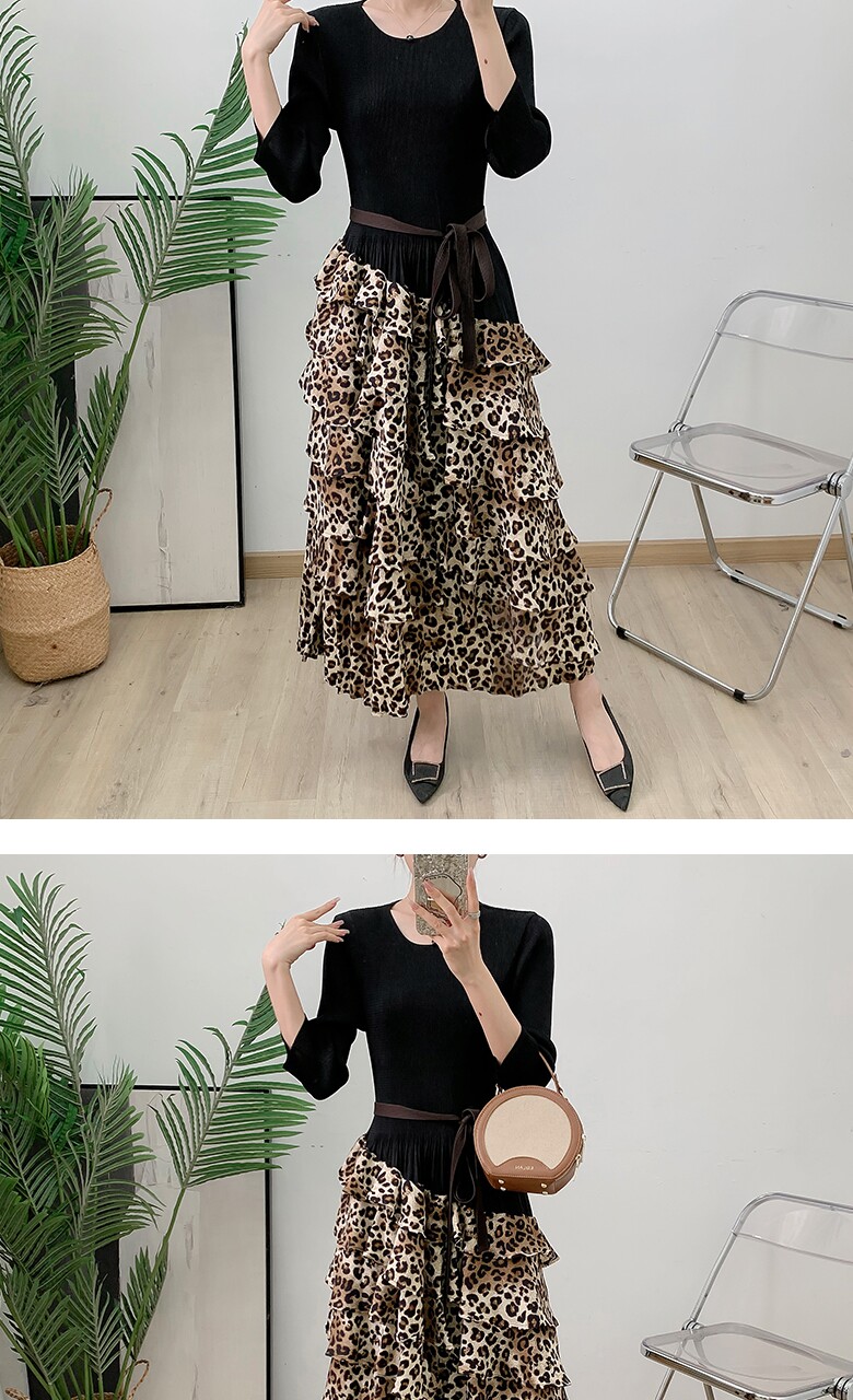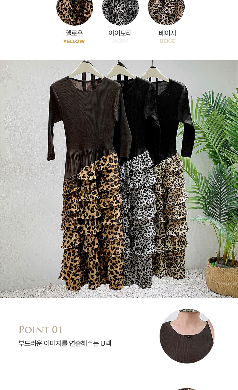 플라라 (88까지)플리츠레오파드티어드원피스+벨트SET