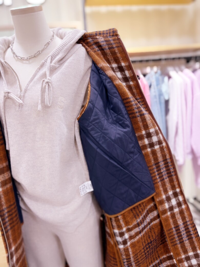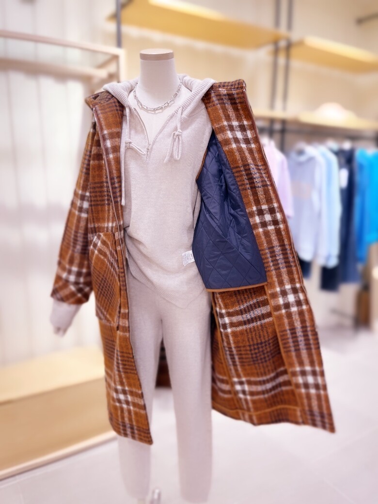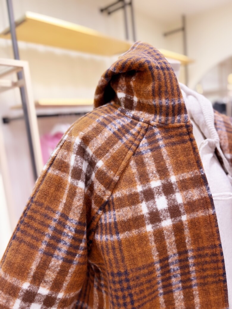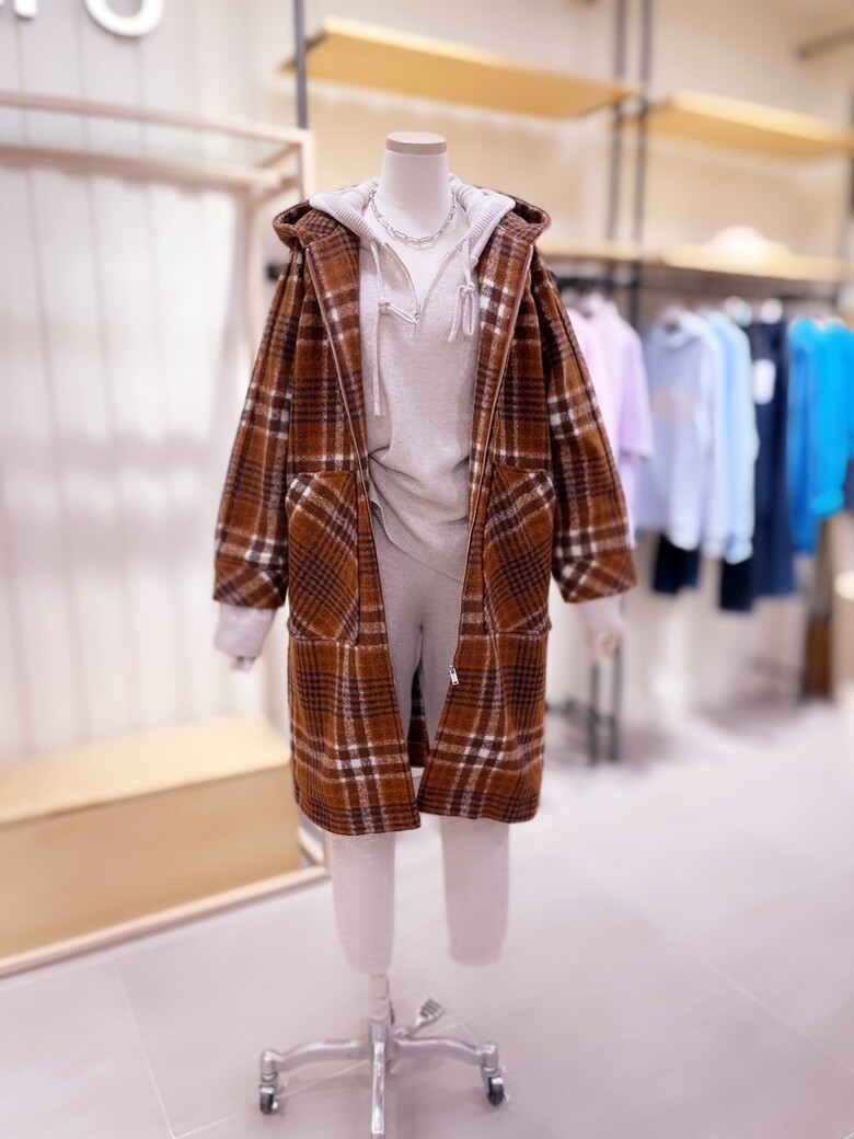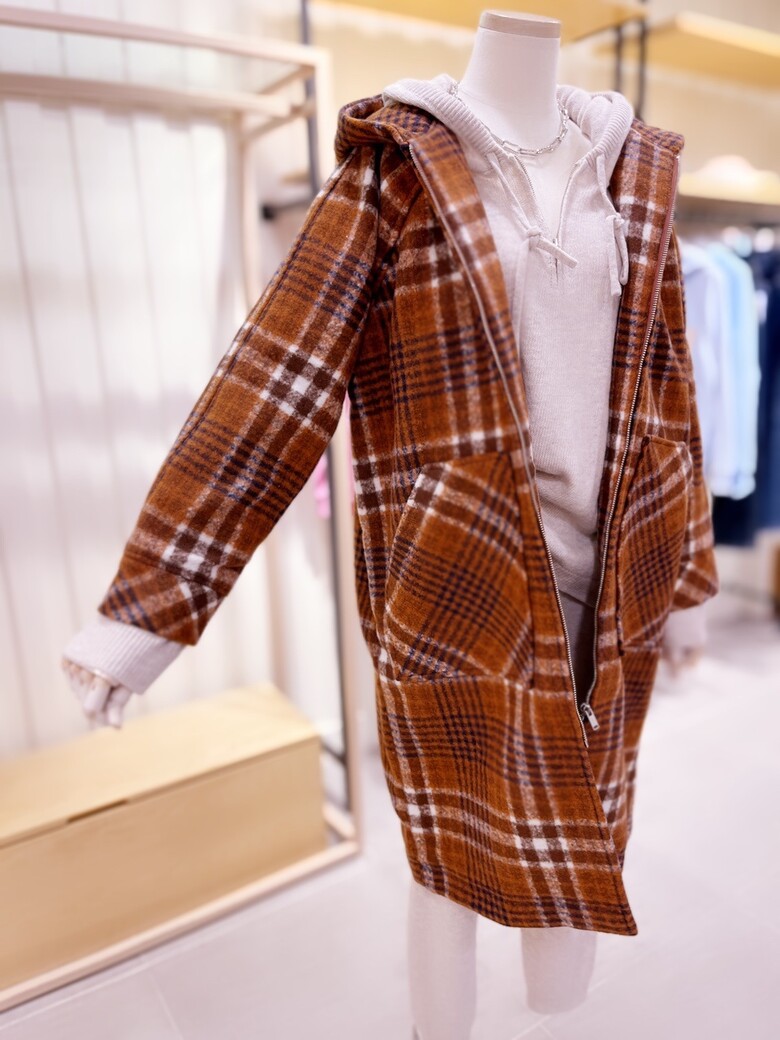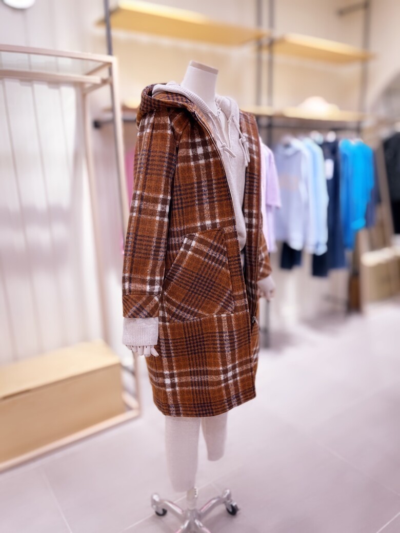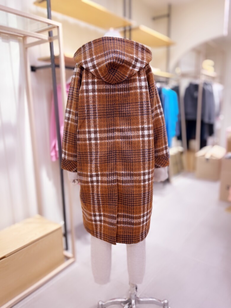 SH4CTFDB431_포켓 체크 후드 롱 코트
