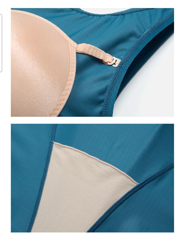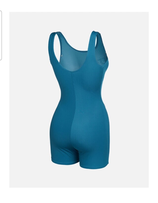 블루 계열 컬러감이 고급스러우며 착용하기 편한 U라인 2부 반신수영복입니다.