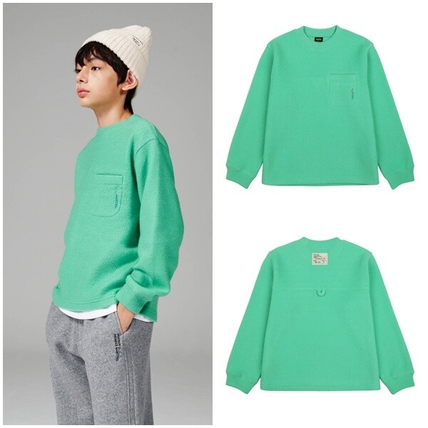 AYH3TS04GN_장식 포켓 그린 기모 티셔츠