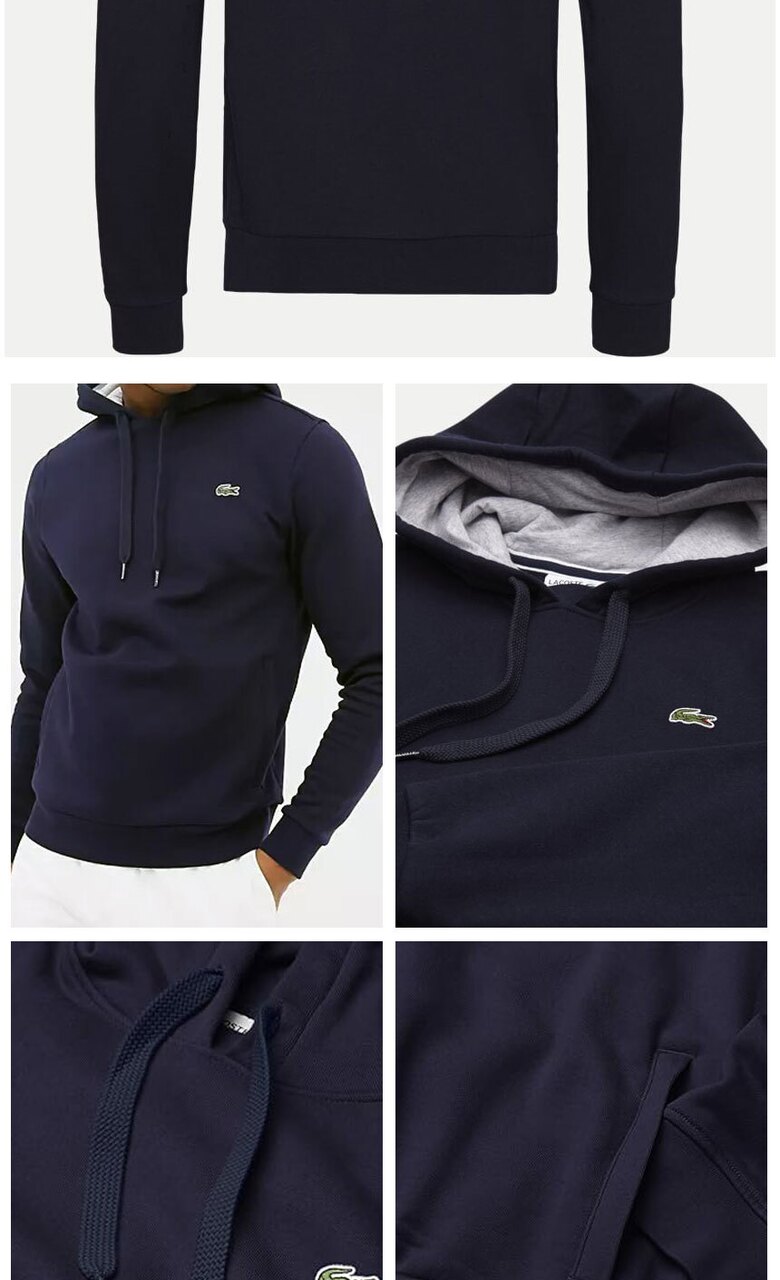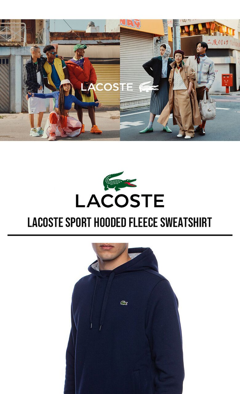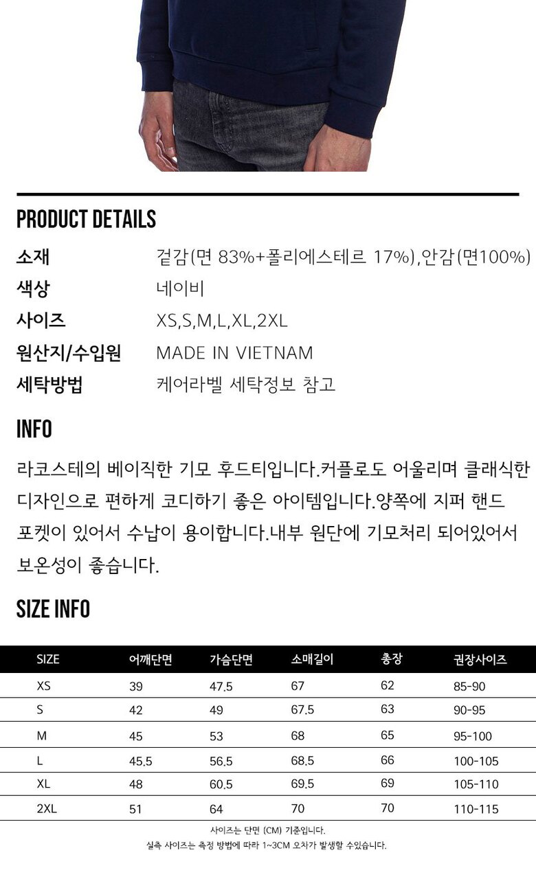 LACOSTE 플리츠 기모 후드 티셔츠 SH2128 - 네이비