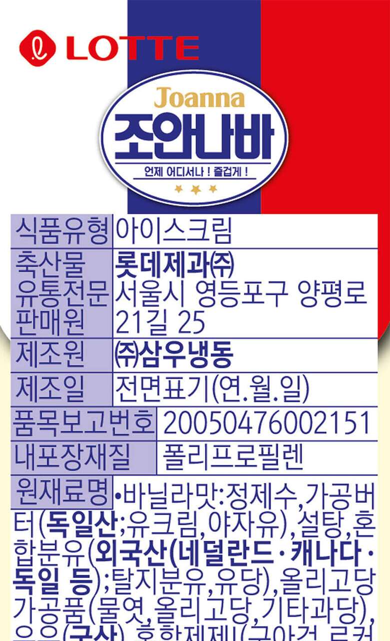 #롯데 #롯데제과 #롯데웰푸드 #빙과 #조안나바 #396ml #아이스크림