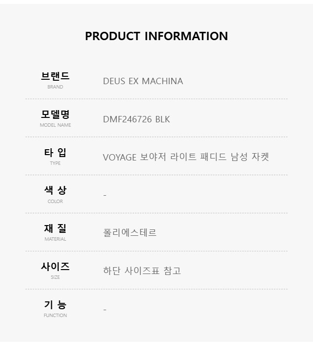 데우스엑스마키나 DMF246726 BLK VOYAGE LIGHT PADDED JACKET 남성 자켓