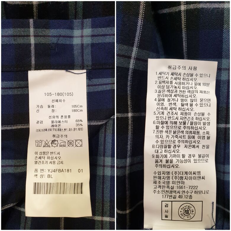 • 처음 배송된 상품상태와 다를 경우(세탁/착용 후 외출하신 경우) 반품이 불가합니다.