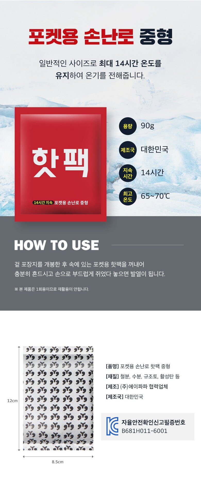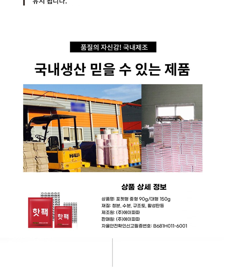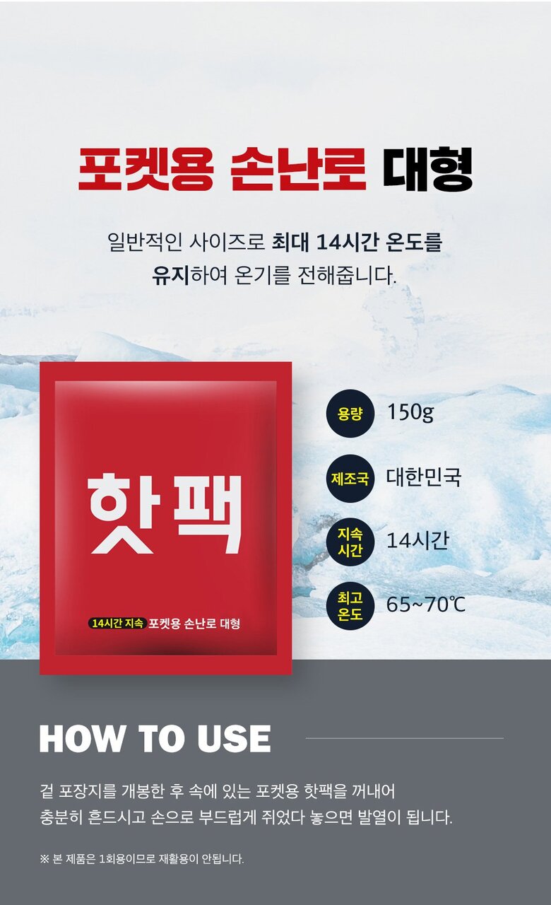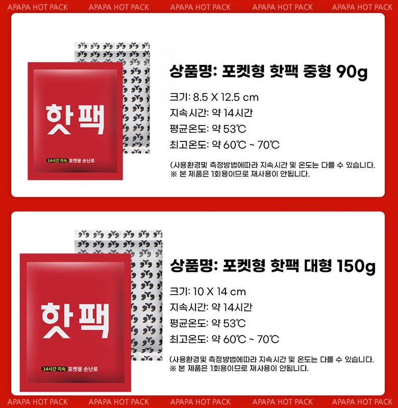 파파맘 국내생산 갓성비 대형 핫팩 150g