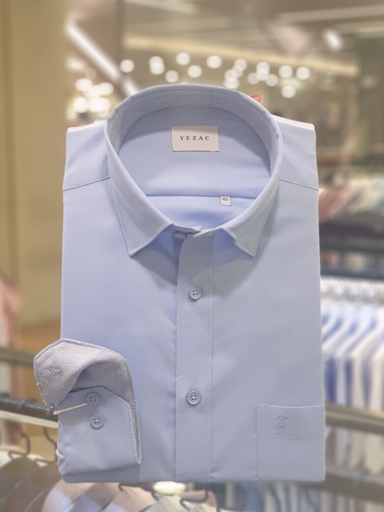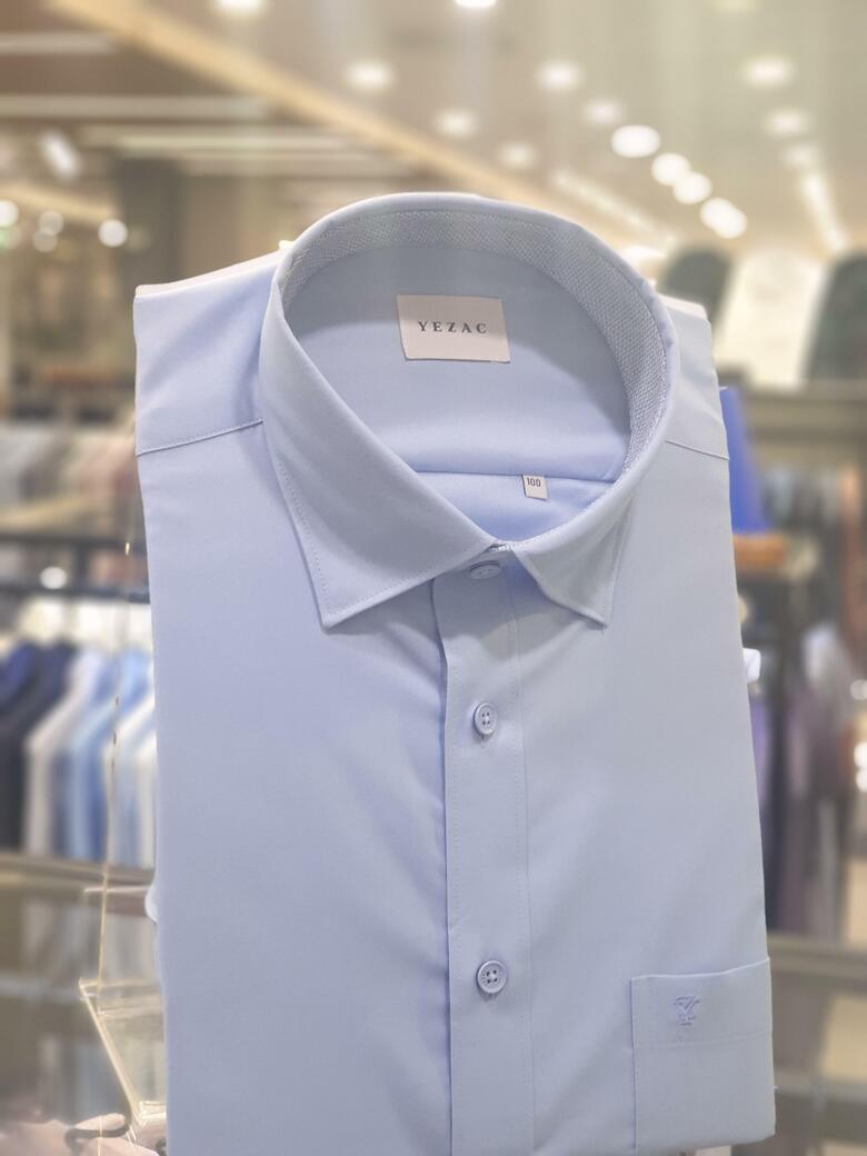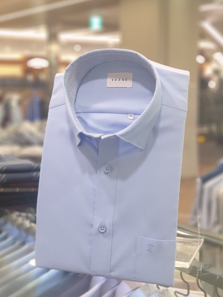 [예작셔츠] 블루 링클프리 스판 카라스냅버튼 일반핏셔츠 YJESBR103BL