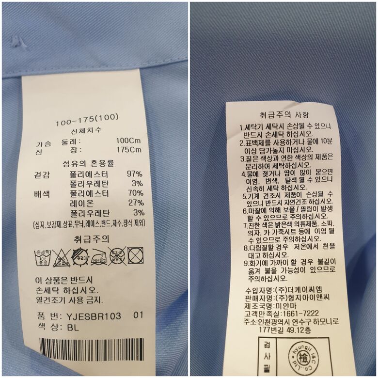 6. 세탁방법 및 취급시 주의사항 | 상품상세참조 |