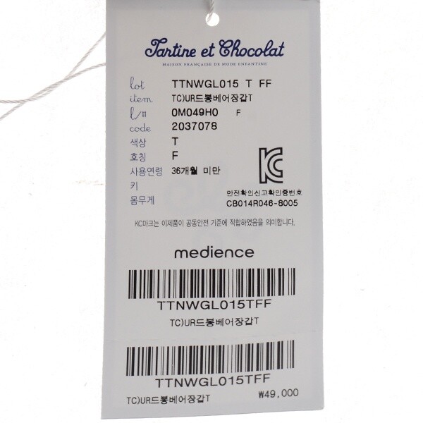 품명 및 모델명 : [쇼콜라]세잔비니 드봉베어장갑 2종세트(TTNWHT096 GL015 I)