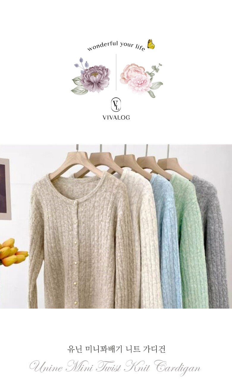 [비바로그] 유닌 미니꽈배기 니트 가디건