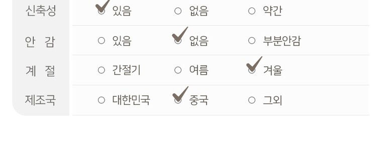 1. 제품 소재 (섬유의 조성 또는 혼용률을 백분율로 표시, 기능성인 경우 성적서 또는 허가서) | 상세페이지 참조 |