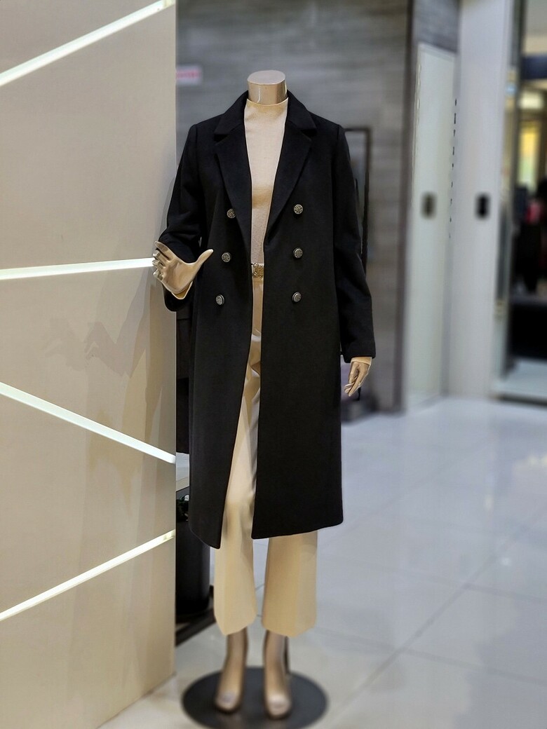 더블브레스트 장식 히든 고리 클로징 실루엣이 멋스러우며