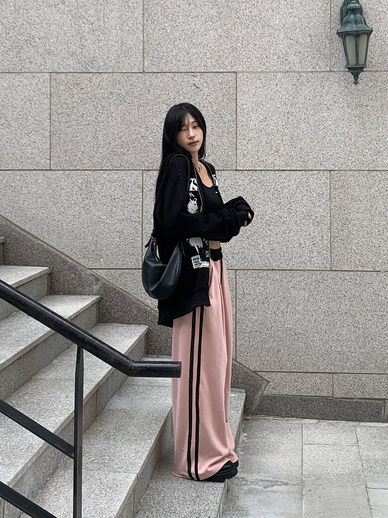 네쥬 여성 가을 편한 밴딩 와이드 핀턱 배색 캐주얼 팬츠