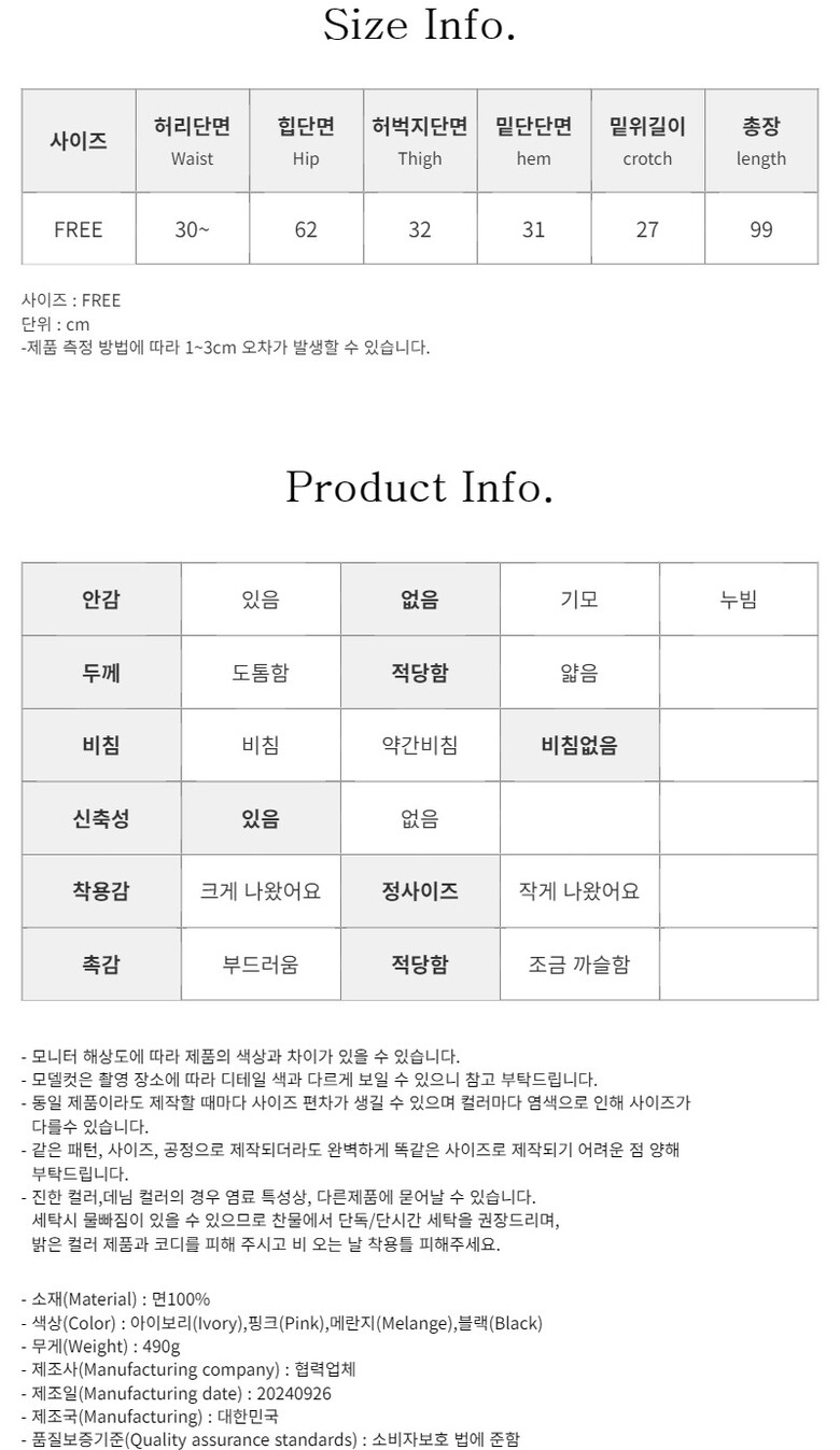 | 1. 제품 소재 (섬유의 조성 또는 혼용률을 백분율로 표시, 기능성인 경우 성적서 또는 허가서) | 상세이미지 참조 |