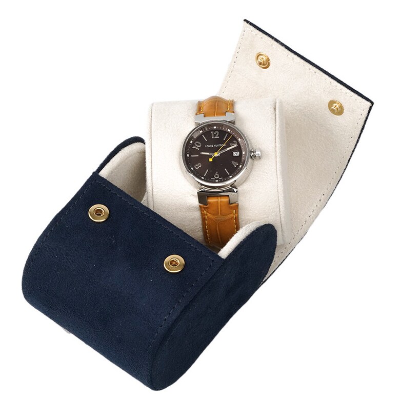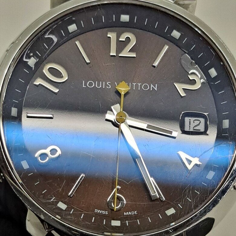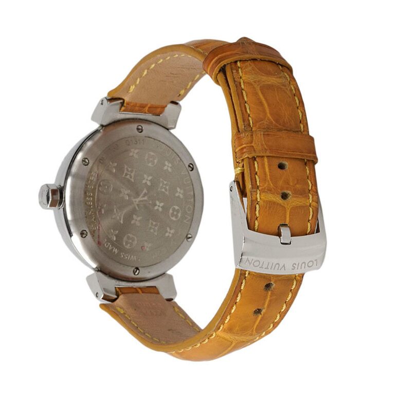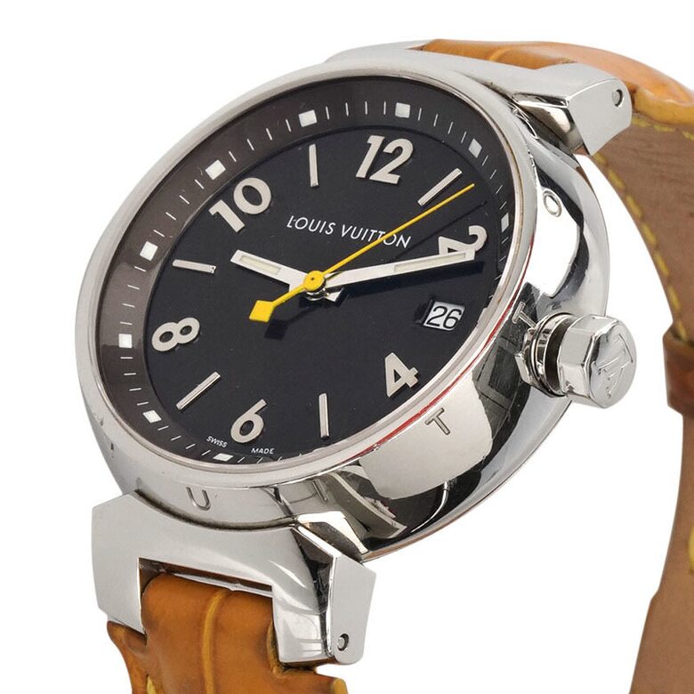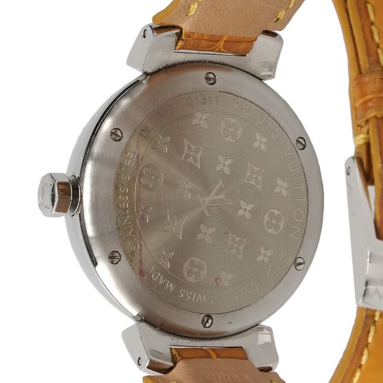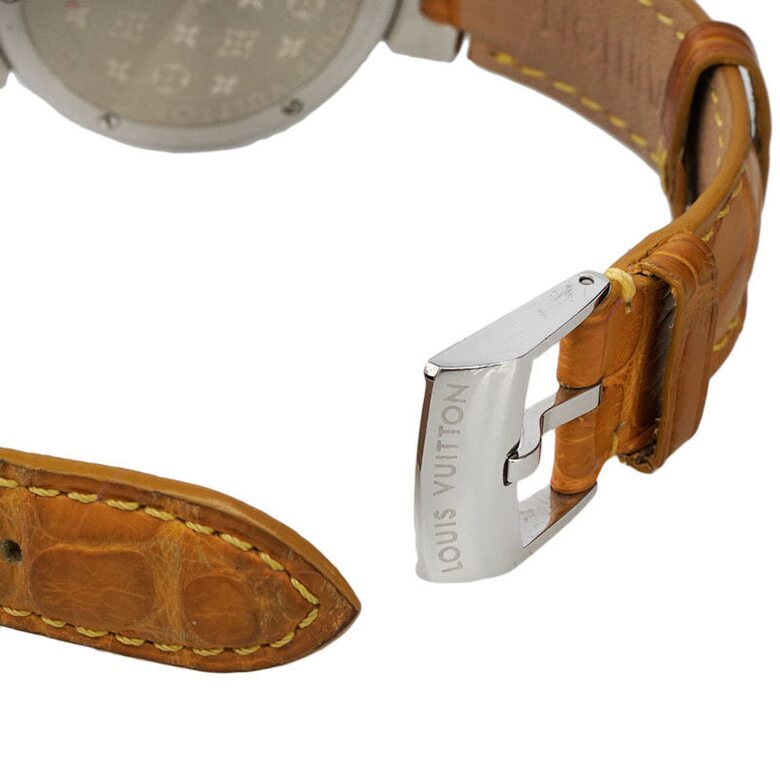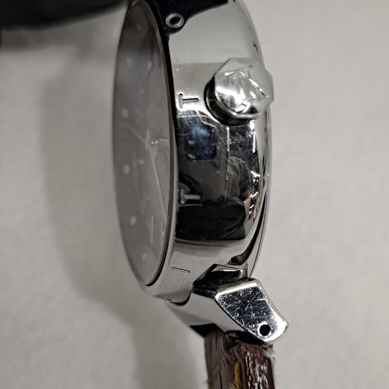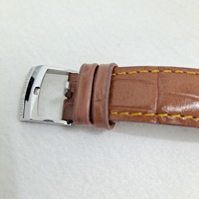 [중고명품] 루이비통 브라운 블랙 땅부르 다이얼 쿼츠 가죽 시계 28mm
