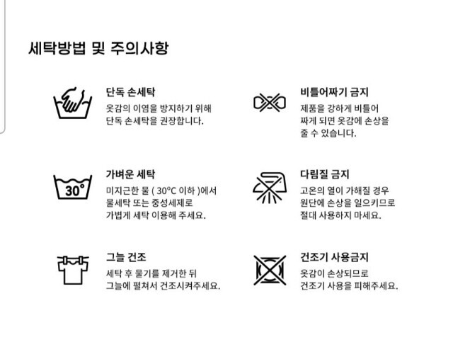 6. 세탁방법 및 취급시 주의사항 상품상세참조