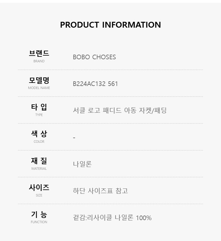 보보쇼즈 B224AC132 561 서클 로고 패디드 아동 자켓