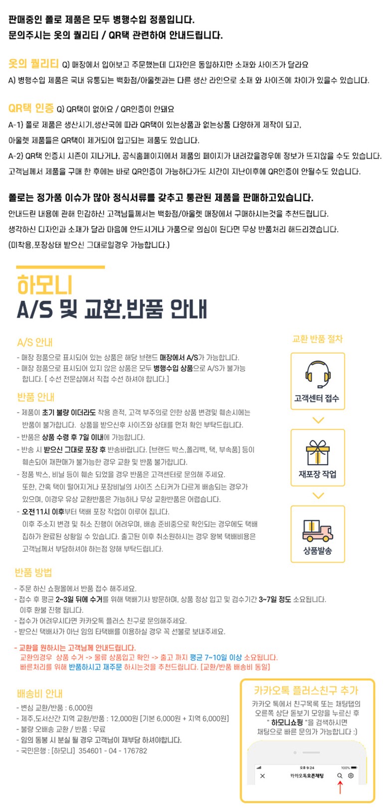 9. A/S 책임자와 전화번호 | 안내 / 010-8074-6996 카카오톡 / 하모니쇼핑 |