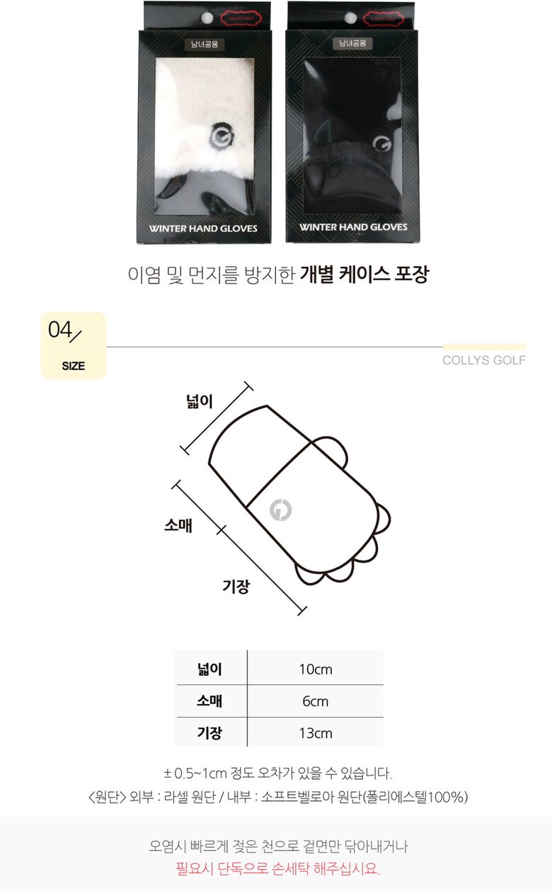 1. 품명 및 모델명 콜리스 방한용 손등토시