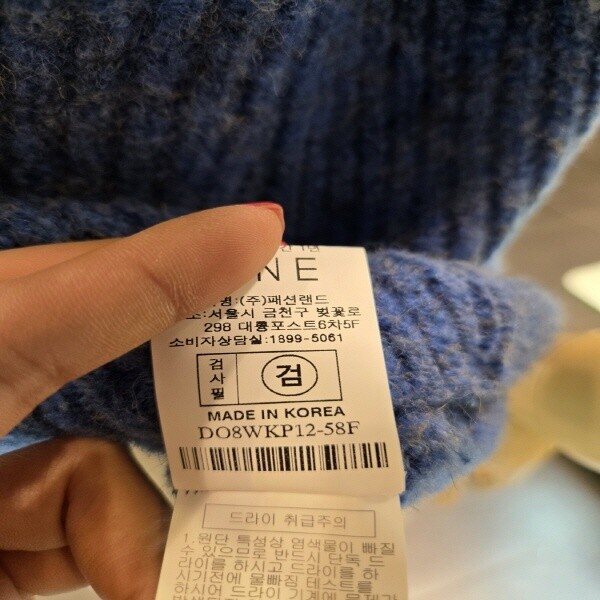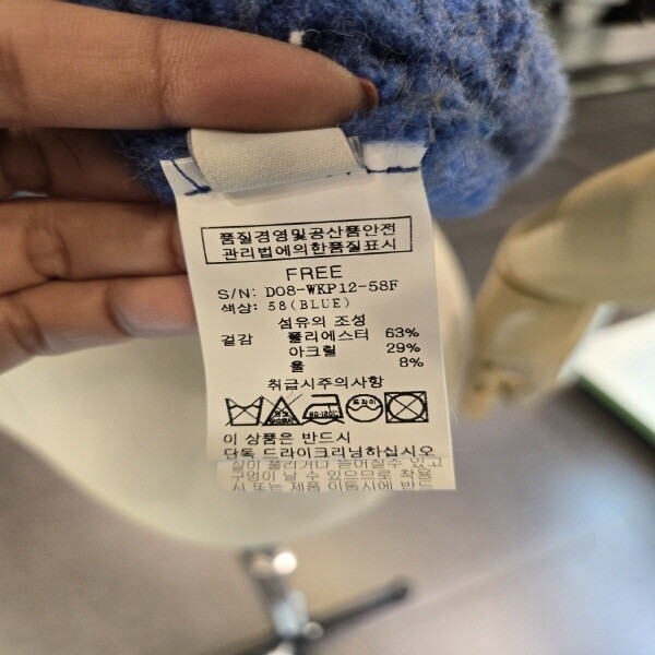 제품소재 : 폴리에스터63%,아크릴29%,울8%