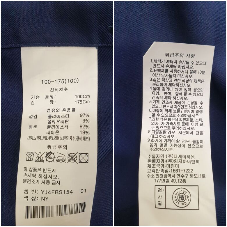 | 6. 세탁방법 및 취급시 주의사항 | 상품상세참조 |