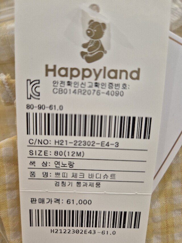 해피랜드 쁘띠 체크 바디슈트