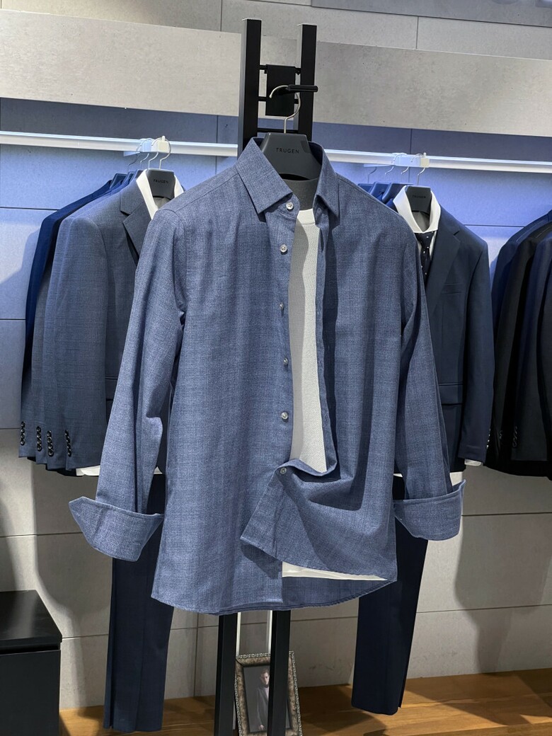 트루젠 멜란지블루 기본핏 캐주얼 셔츠 228817001093-100