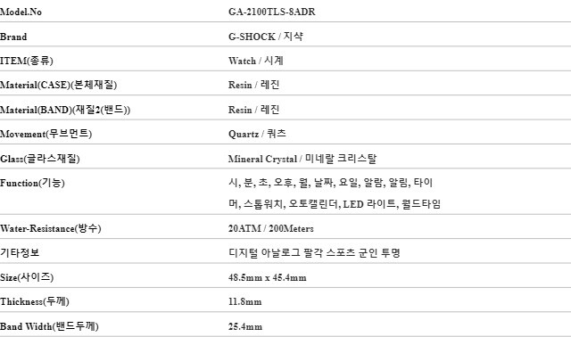 지샥 시계 GA-2100TLS-8ADR (GA-2100TLS-8A) 빅페이스 디지털 팔각 남성시계 남자시계 당일발송
