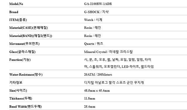 지샥 시계 GA-2100RW-1ADR (GA-2100RW-1A) 빅페이스 디지털 팔각 남성시계 남자시계 당일발송