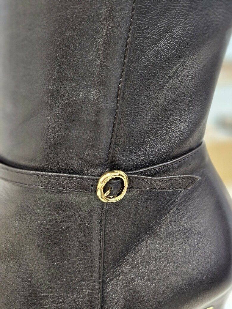 ▶ 골드장식이 들어간 힐굽이 시크한 분위기를 연출함