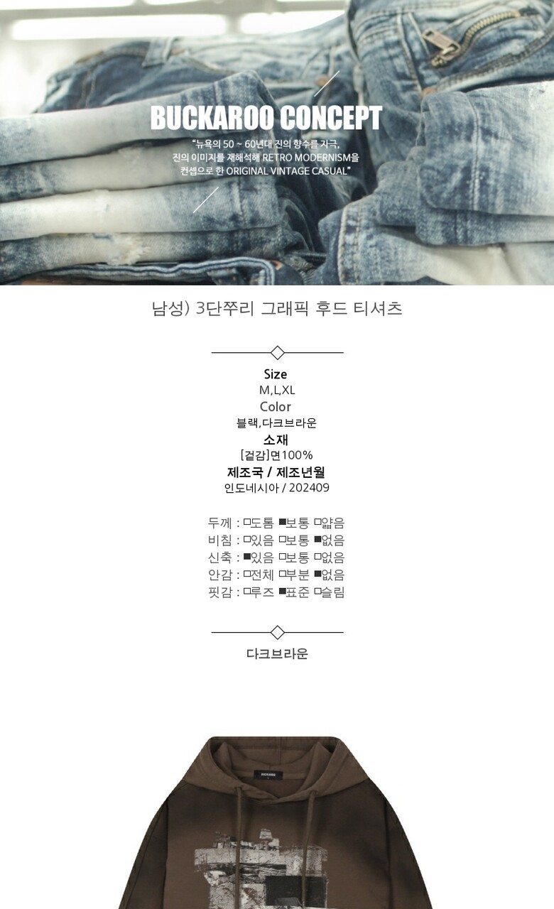 [버커루] 남성) 3단쭈리 그래픽 후드 티셔츠 (B243TS300P)