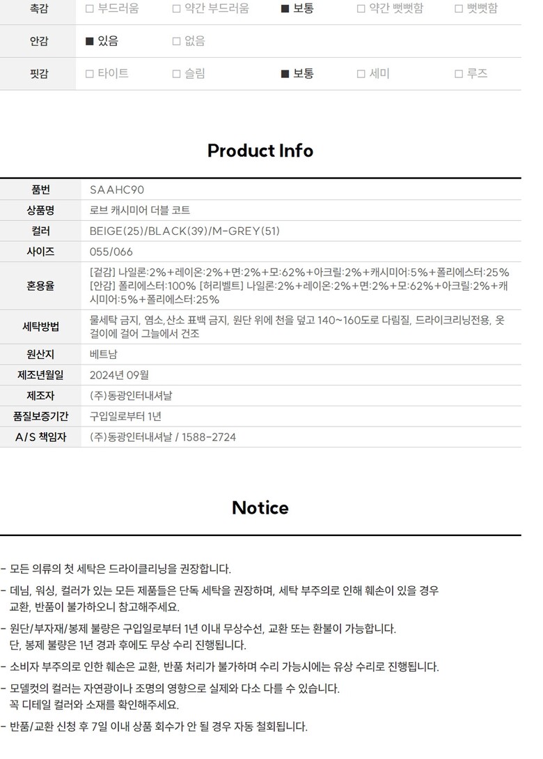 • 처음 배송된 상품상태와 다를 경우(세탁/착용 후 외출하신 경우) 반품이 불가합니다.