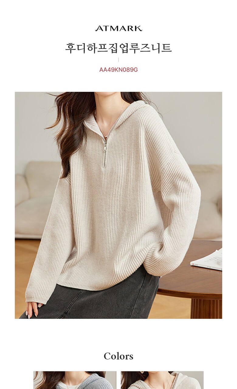 ATMARK 후디하프집업루즈니트_AA49KN089G