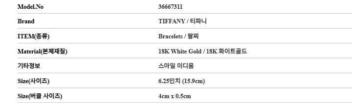 | 7. 주요 사양 | 18K 화이트골드 팔찌 |