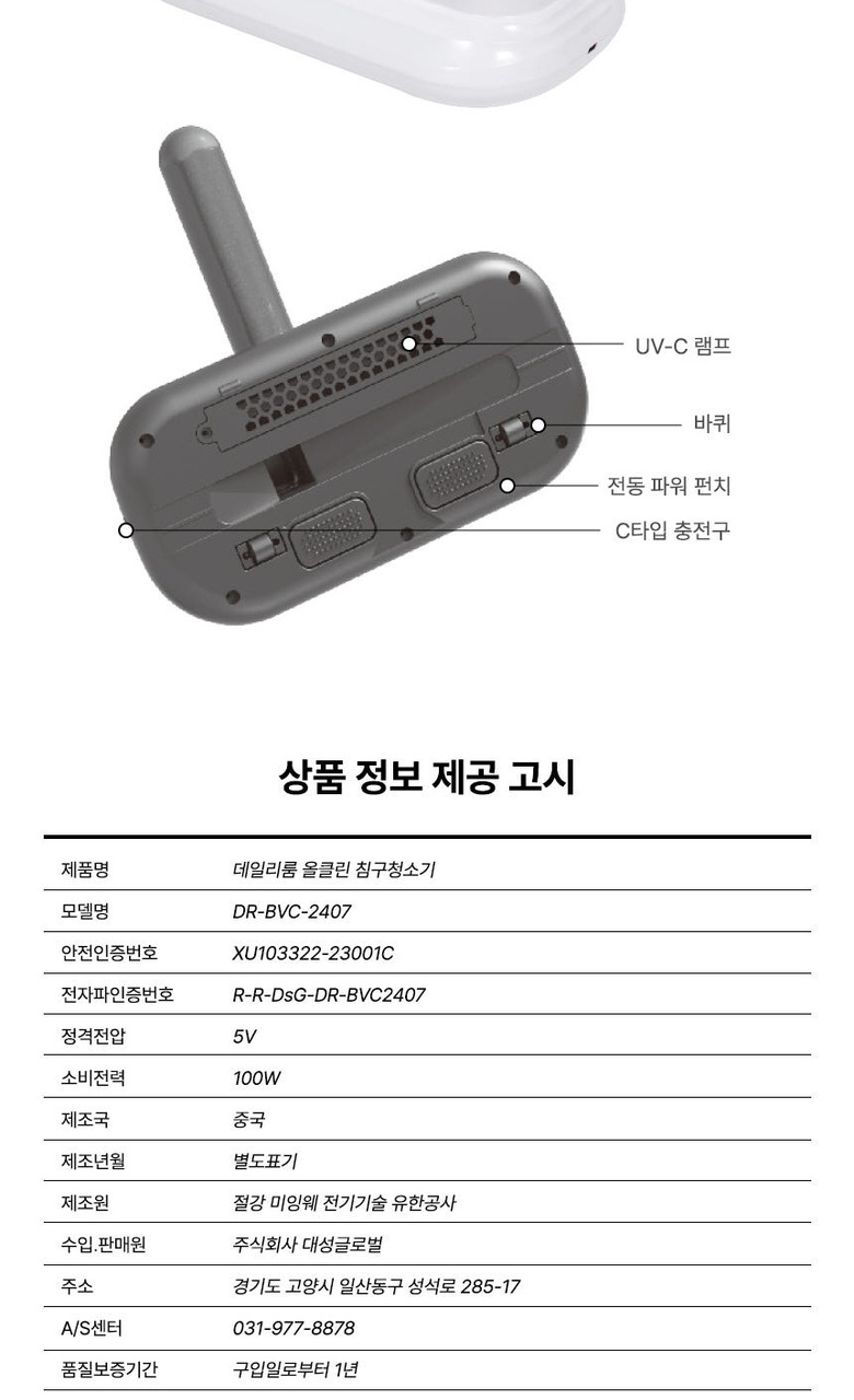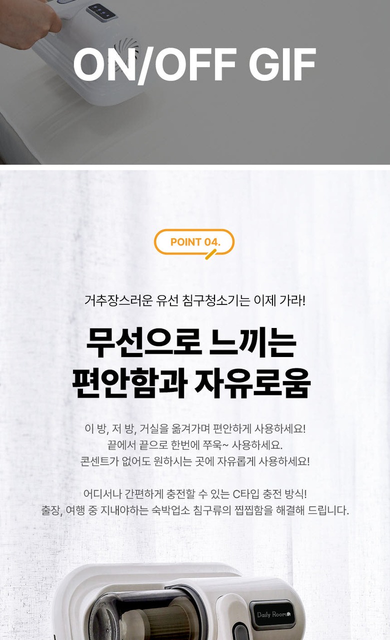 [데일리룸] 올클린 무선 침구청소기 DR-BVC-2407