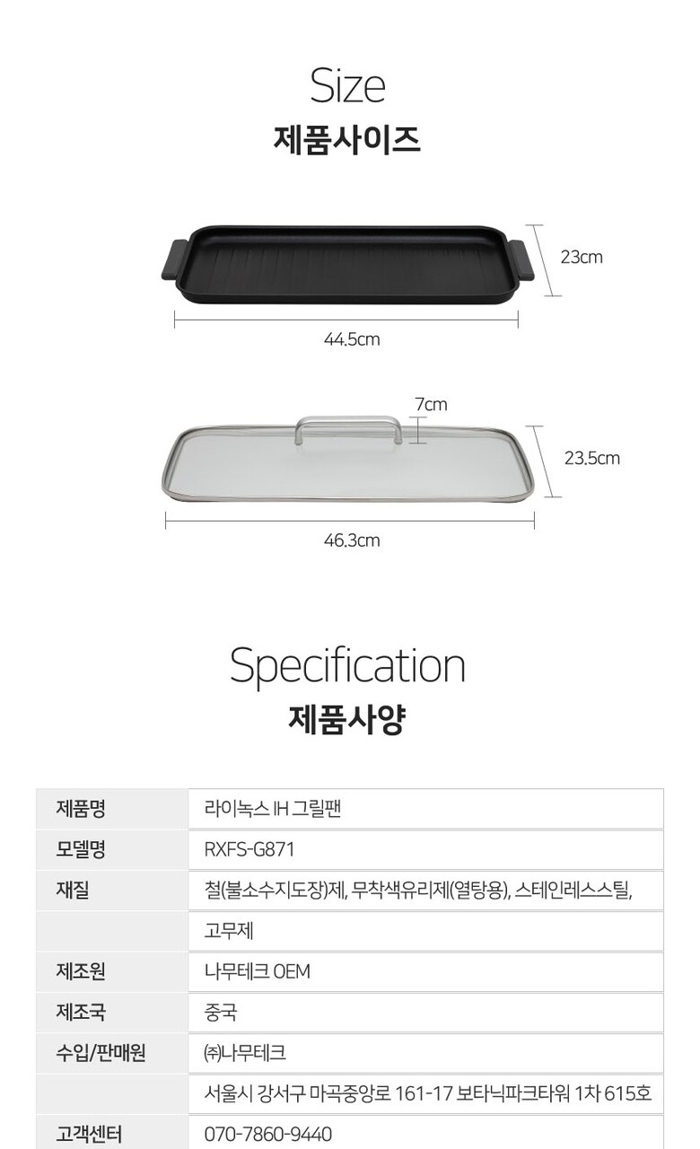 [라이녹스] IH 와이드 그릴팬 RXFS-G871