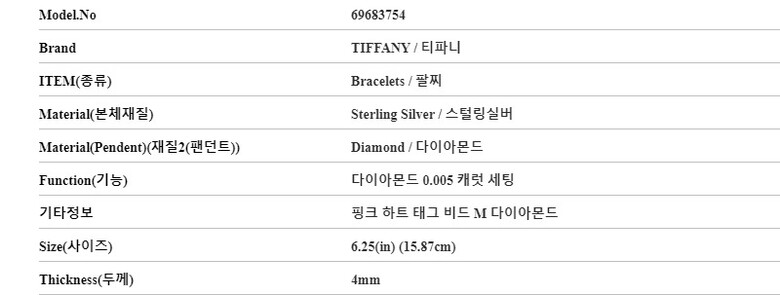 티파니앤코 팔찌 69683754 리턴 투 티파니 핑크 하트 태그 비드 M 다이아몬드 실버 여성팔찌 여자팔찌 당일