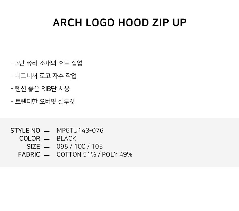 [레이피커스] 아치 로고 후드 집업 BLACK (MP6TU143-076)