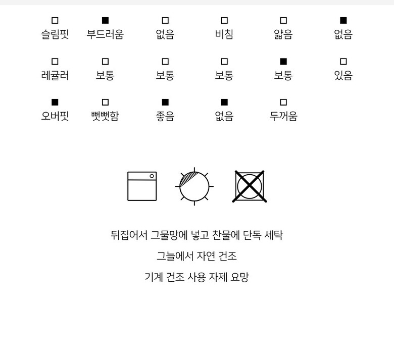 • 처음 배송된 상품상태와 다를 경우(세탁/착용 후 외출하신 경우) 반품이 불가합니다.