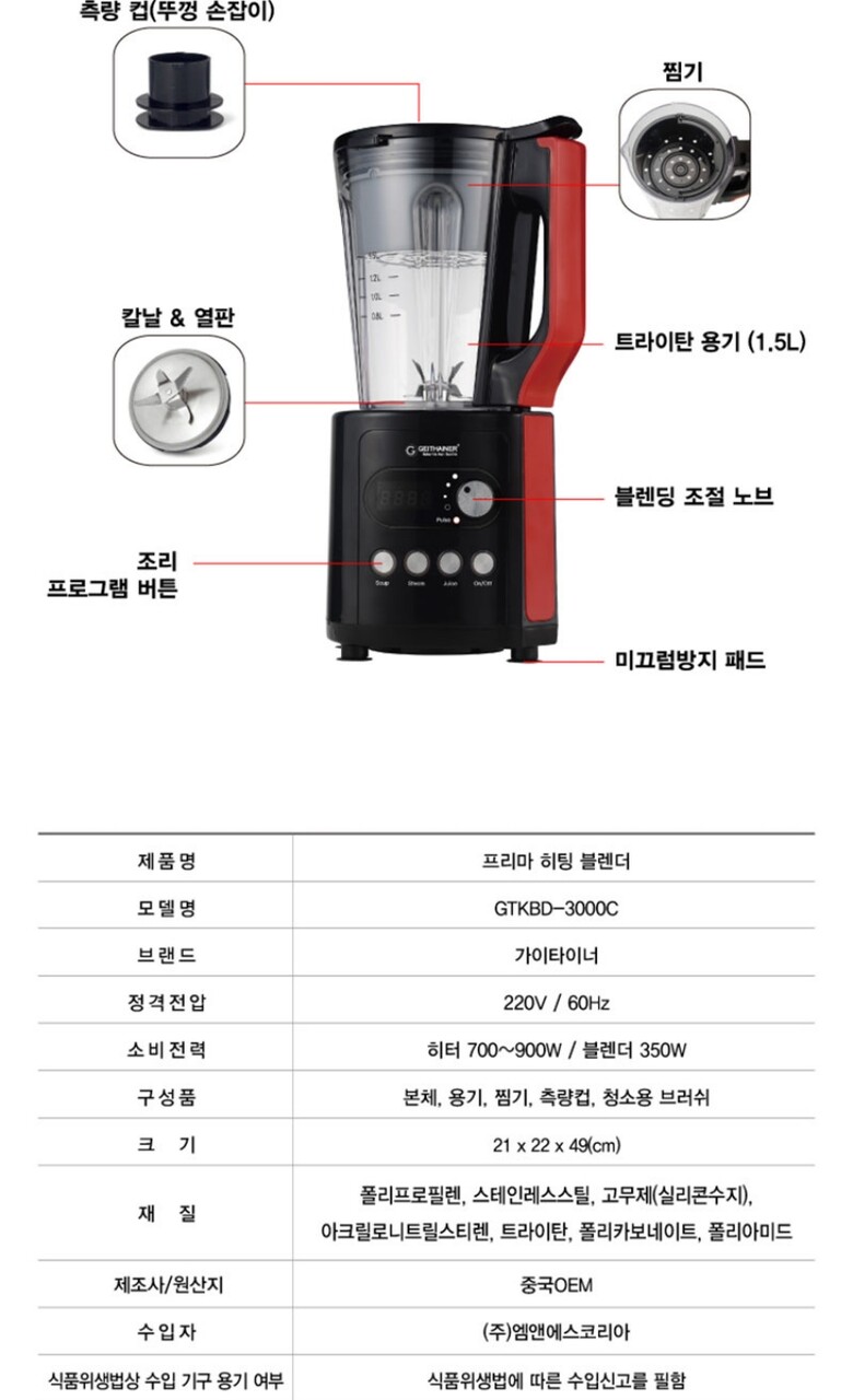 가이타이너 프리미엄 프리마 히팅블렌더 GTKBD-3000C