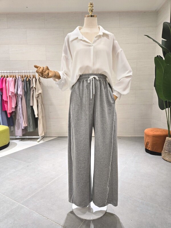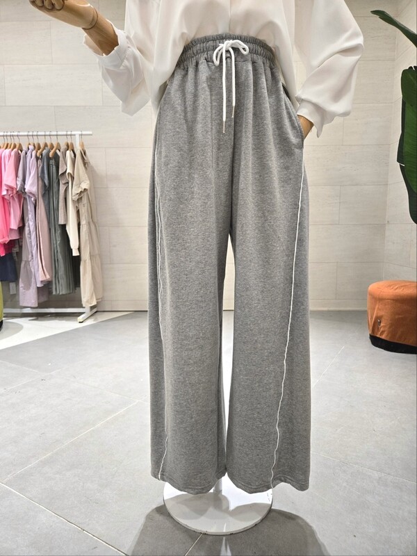 C24K7FPT016_양기모 사이드 절개 삥줄 와이드팬츠
