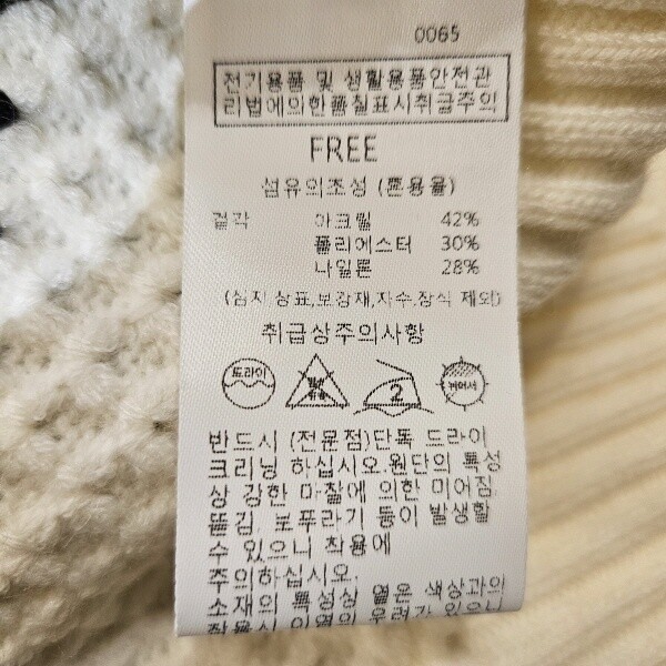 제품소재 : 겉감-아크릴42%, 폴리에스터30%, 나일론28%