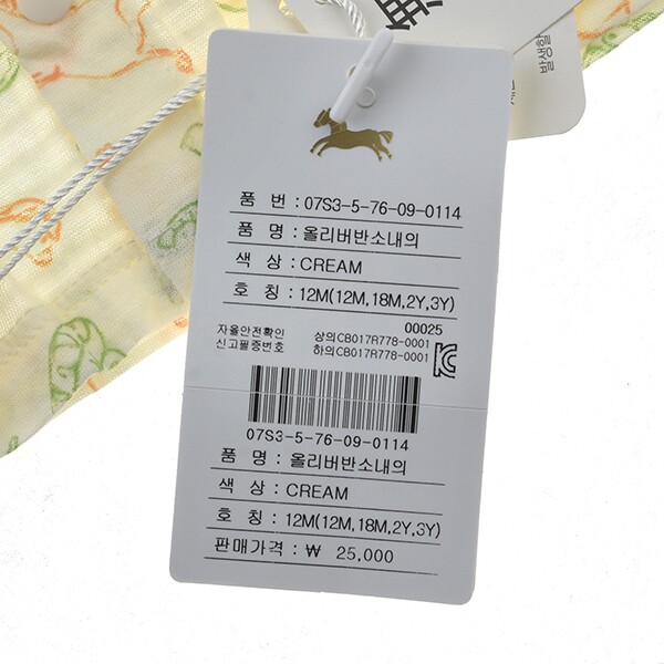 | 1. 제품 소재 (섬유의 조성 또는 혼용률을 백분율로 표시, 기능성인 경우 성적서 또는 허가서) | 올리버반소내의 |