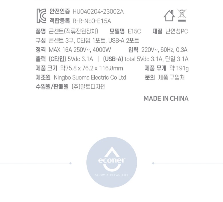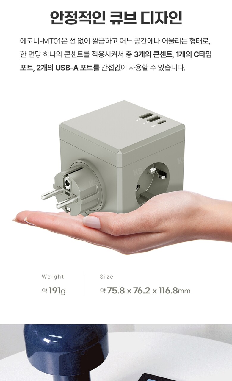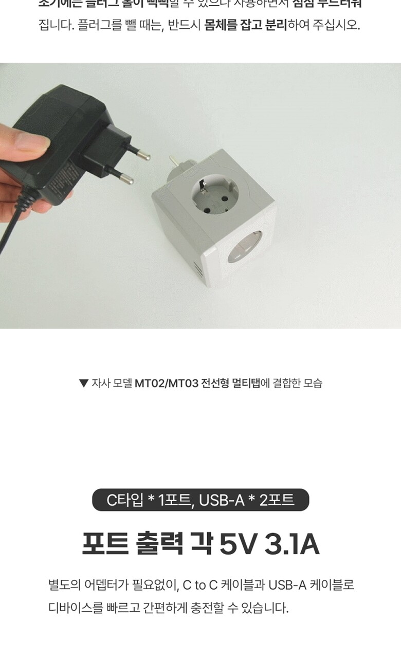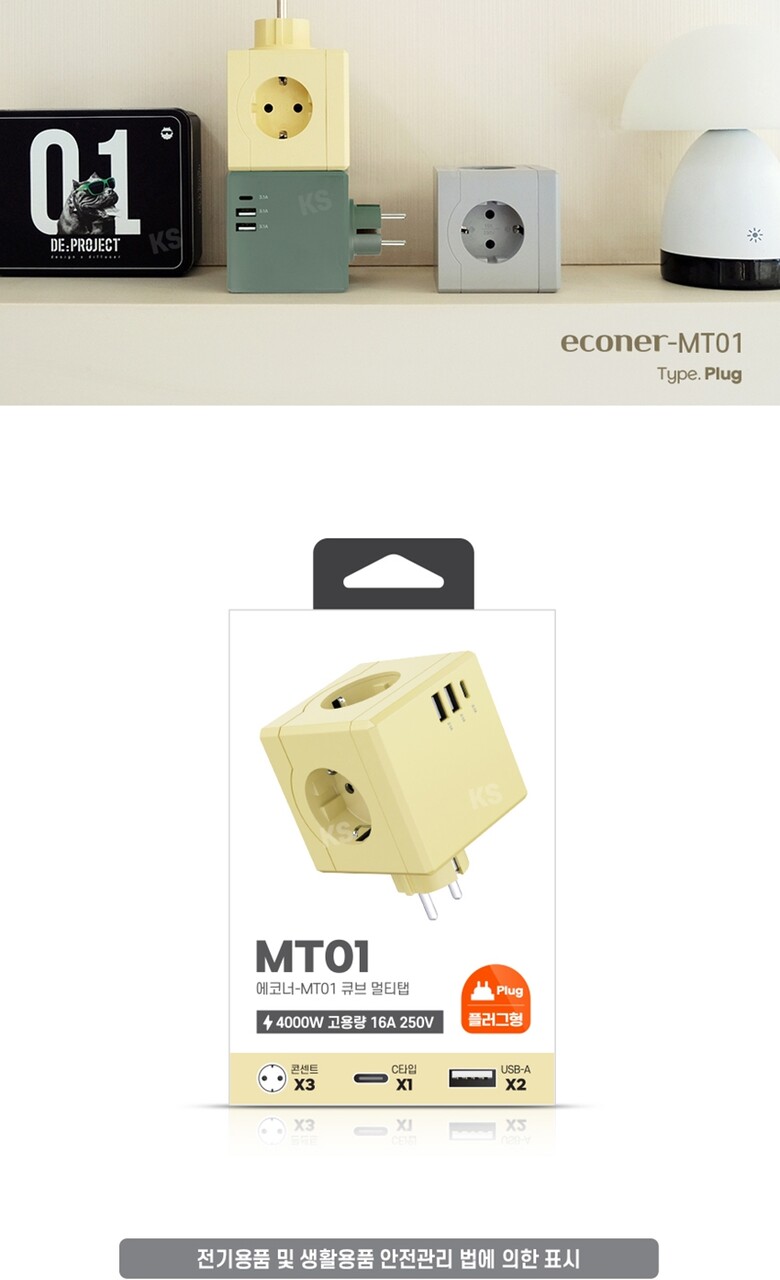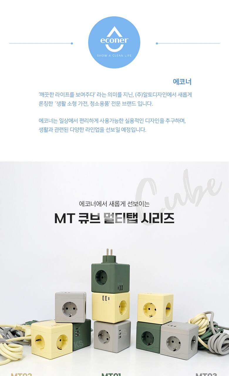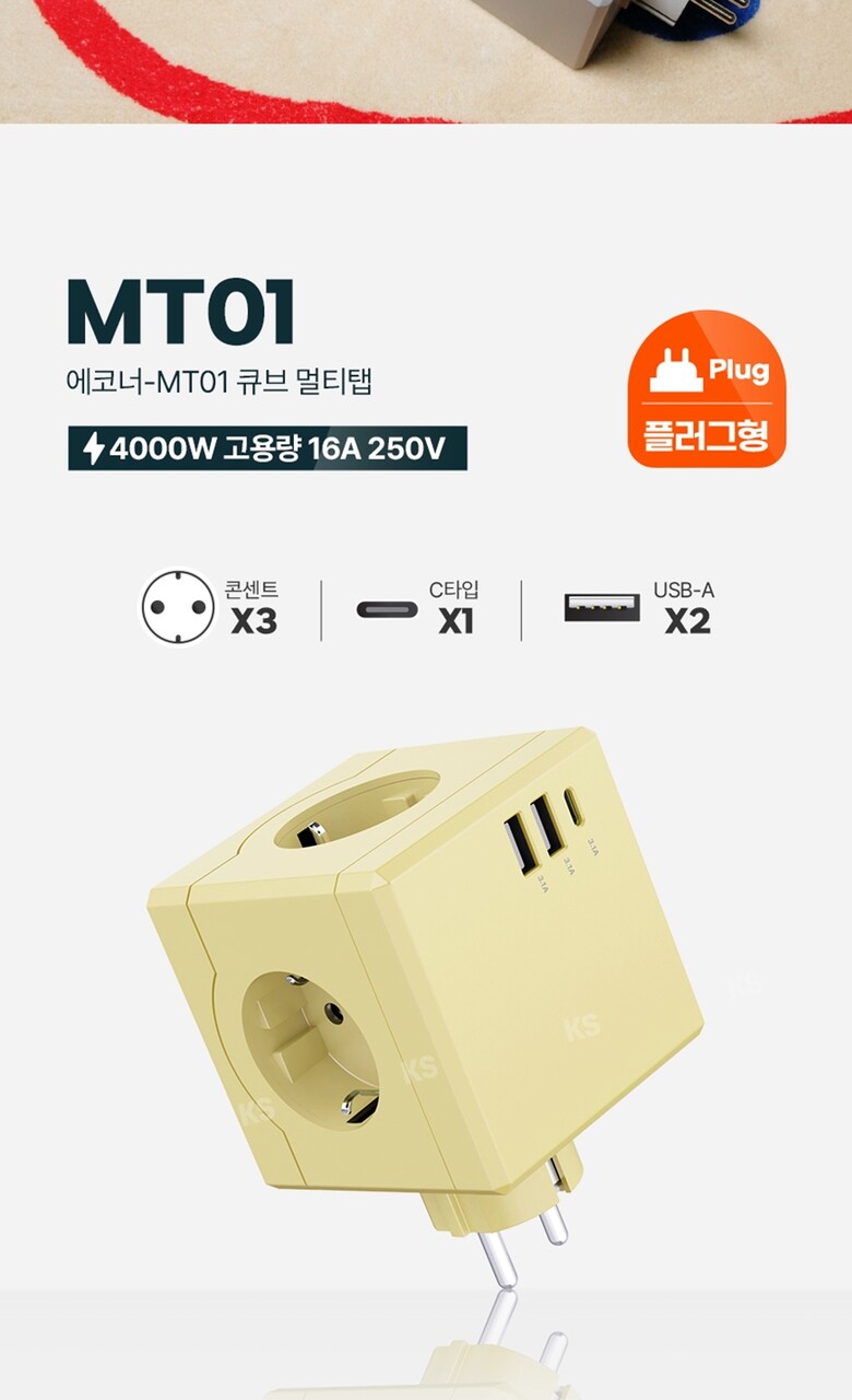 에코너-MT01 큐브멀티탭(3구/C타입/USB)-플러그형